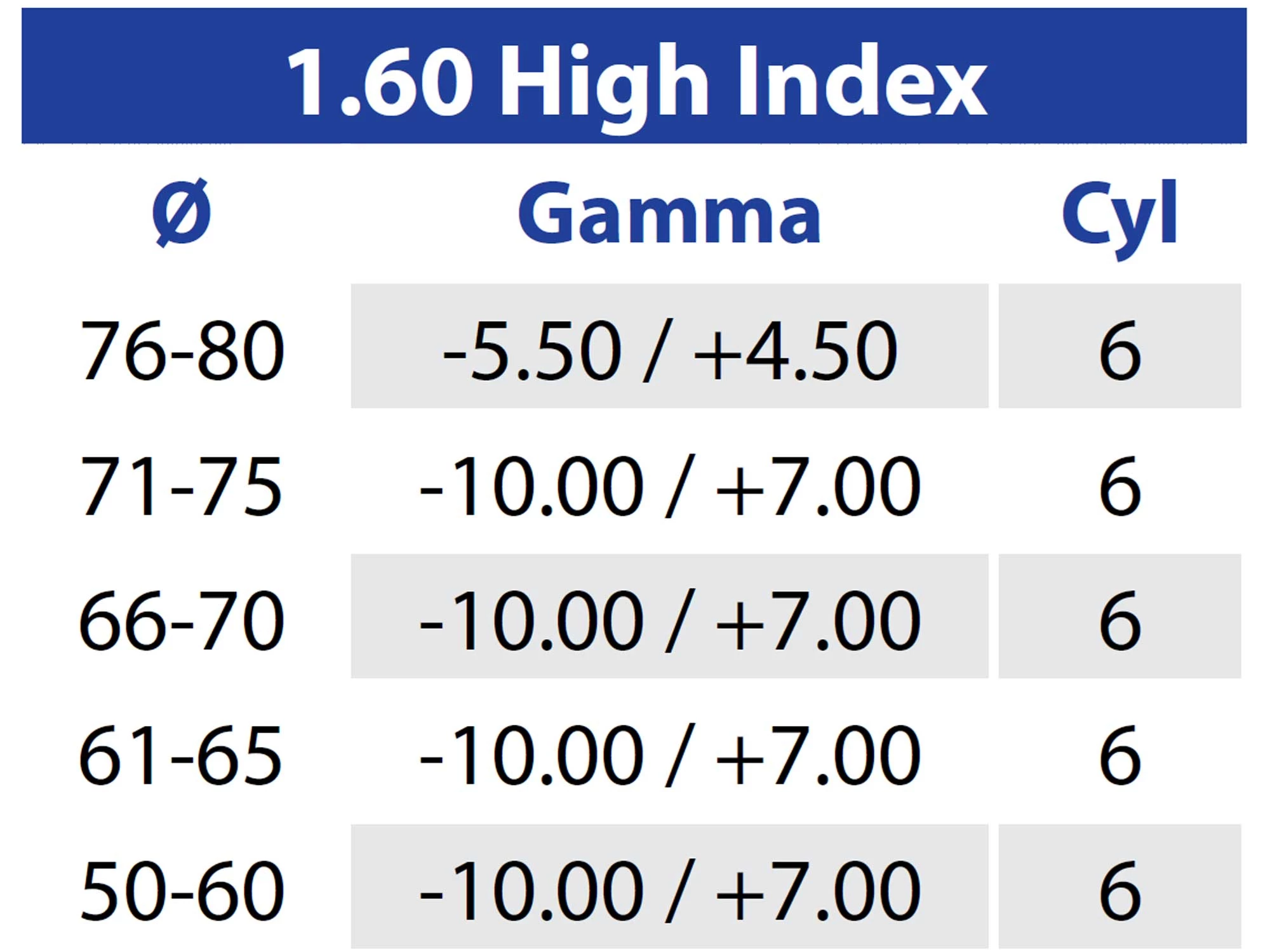 Materiale ad alto indice 1.60: riduce lo spessore della lente, migliorando l’estetica e il comfort per prescrizioni elevate.